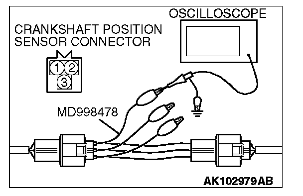 4. Connect the oscilloscope probe to crankshaft position sensor connector terminal No. 2 (black clip of special tool).