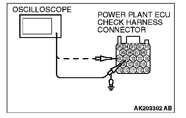 3. Connect the oscilloscope to check harness terminal No. 103. (Check the crankshaft position sensor signal wave pattern.)