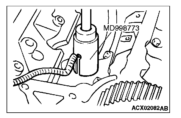 Use special tool MD998773 to tighten the knock sensor to the specified torque in the same manner as removal.