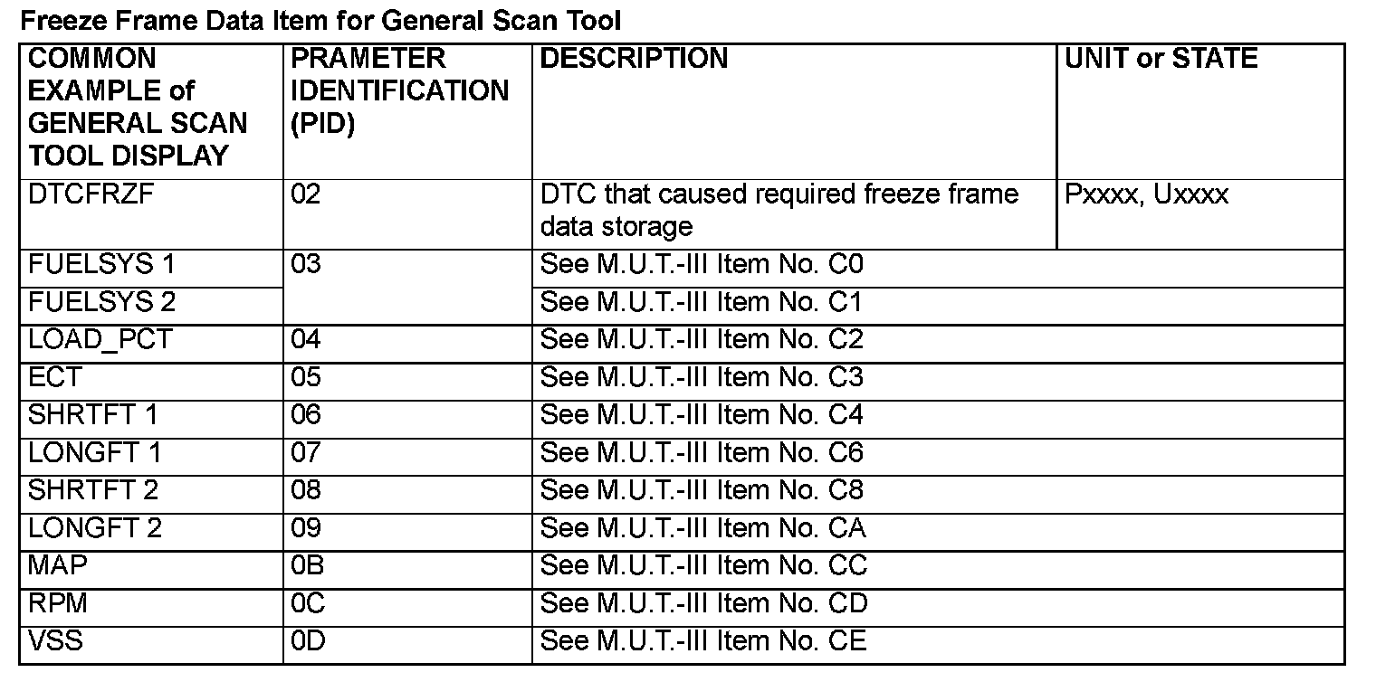 Freeze Frame Data Item for General Scan Tool (Part 1):