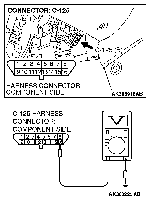 STEP 3. Measure the power supply voltage at data link connector C-125.