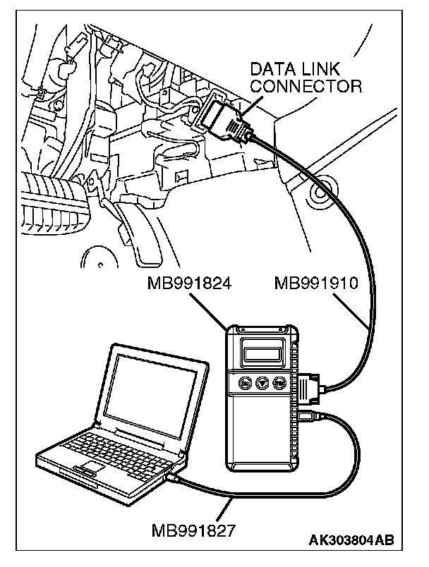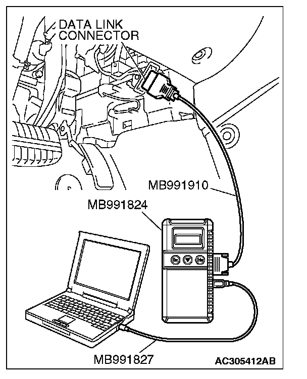 1. Connect scan tool MB991958 to the data link connector.