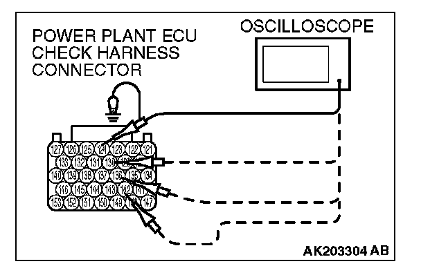 2. Connect the oscilloscope probe to check harness terminal No. 124, No. 130, No. 136 and No. 142.
