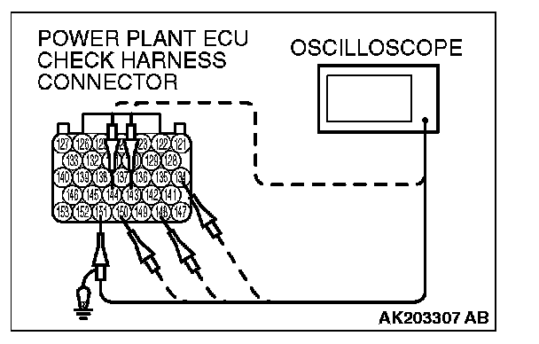 2. Connect the oscilloscope probe to each check harness connector terminal to analyze each cylinder: