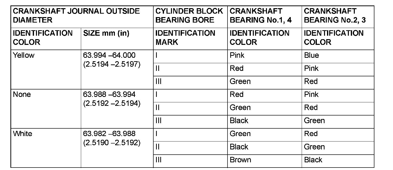 Standard value 0.02 - 0.04 mm (0.0012 - 0.0019 in)