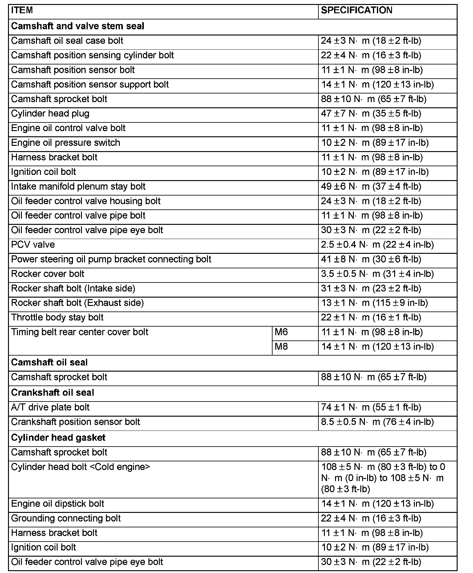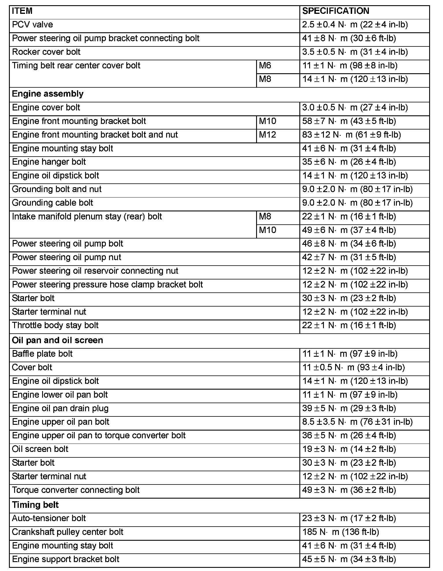 Tightening Specifications