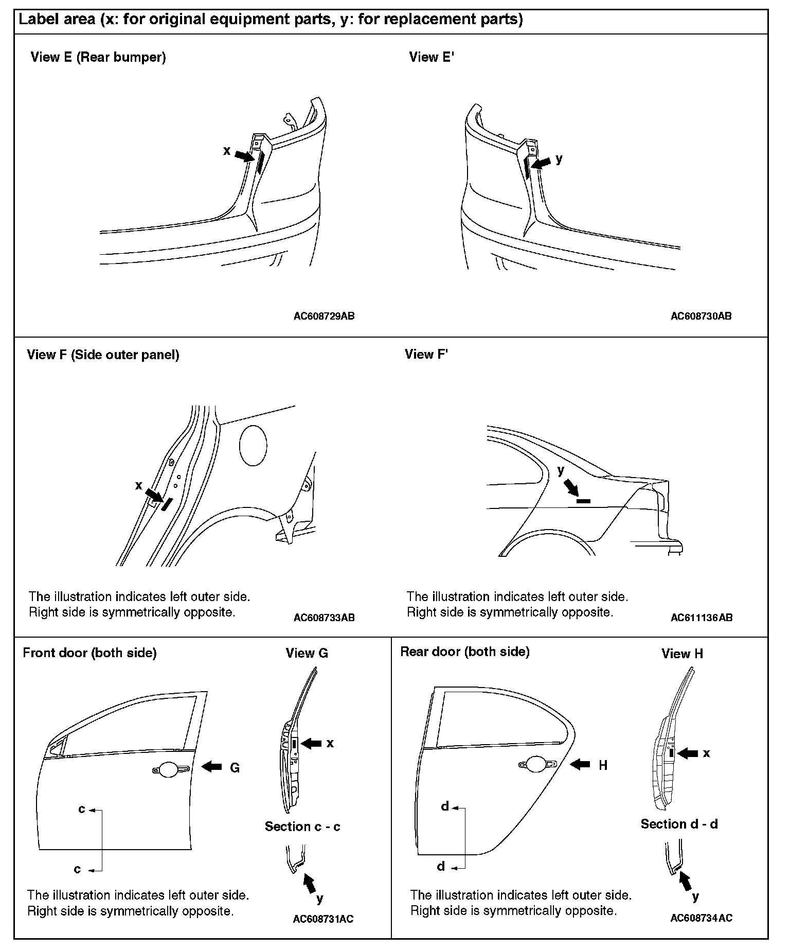 ^ When repainting original parts, do so after first masking the theft-protection label. After painting, be sure to peel off the masking tape.