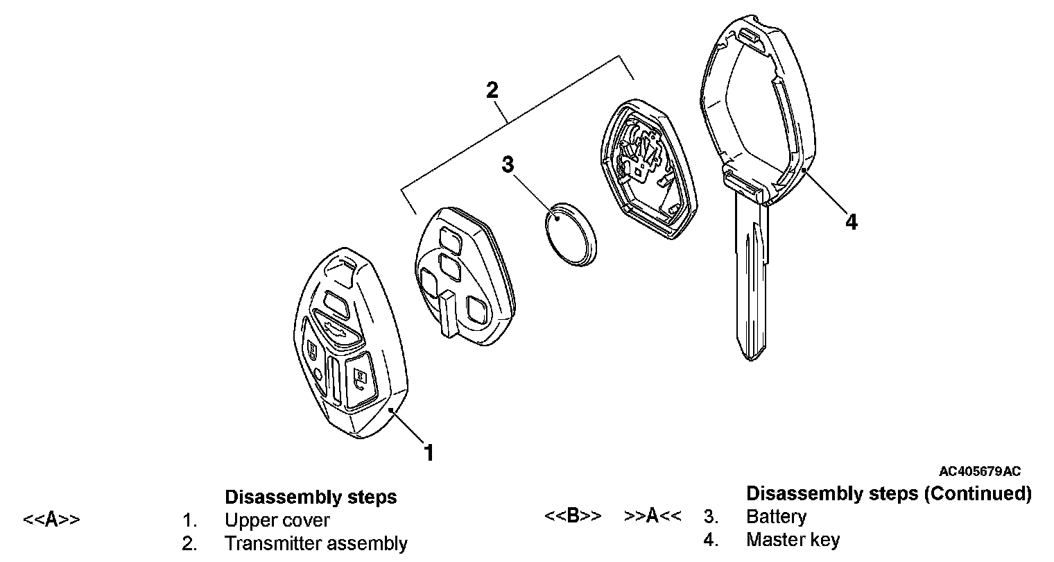 Install a new battery to the transmitter assembly with its (+) side facing towards the master key side.