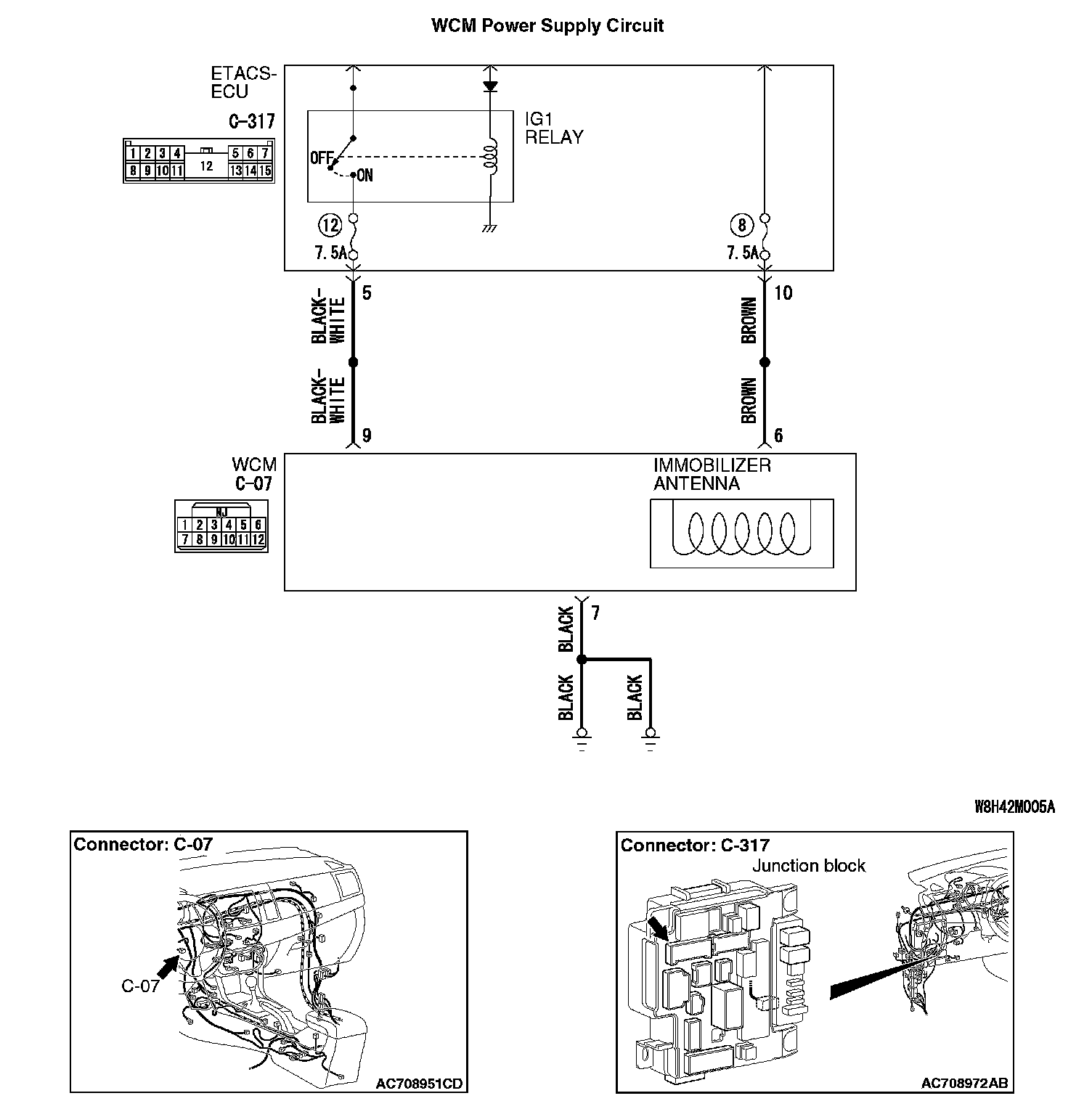 1. Disconnect WCM connector C-07 and ETACS-ECU connector C-317, and check the wiring harness.
