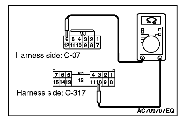 2. Check the wiring harness between WCM connector C-07 (terminal No.6) and ETACS-ECU connector C-317 (terminal No.10)