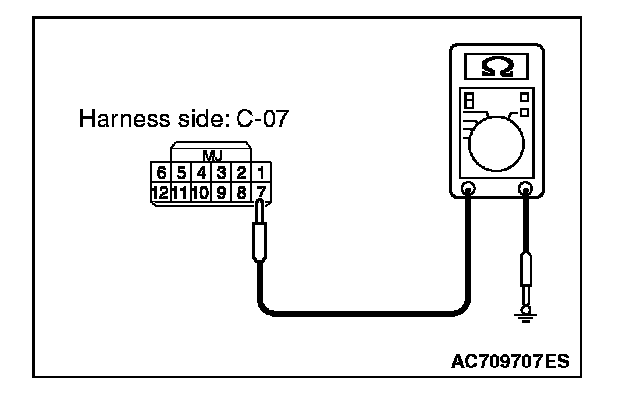 2. Check the wiring harness between WCM connector C-07 (terminal No.7) and ground.