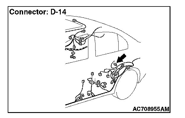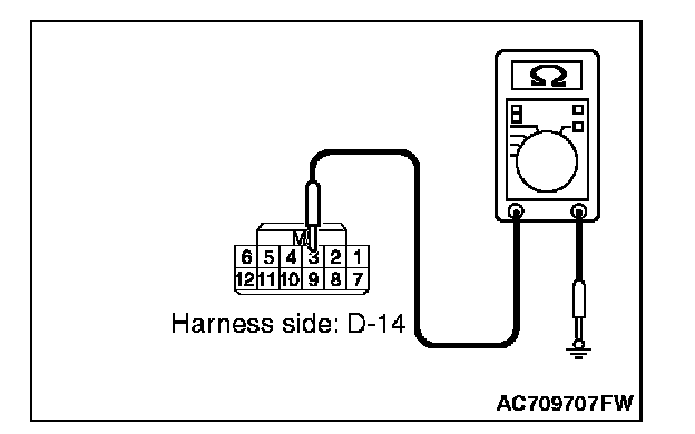 NO (receiver antenna assembly connector D-14 terminal No.3 - ground.) : Repair the wiring harness between receiver antenna assembly connector D-14(terminal No.3) and the ground.