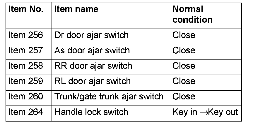 NO [Normal condition is not displayed for item No. 256.] : Refer to Chassis Electrical, Inspection Procedure 5: ETACS-ECU does not receive any signal from the front door switch (LH).