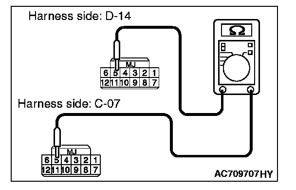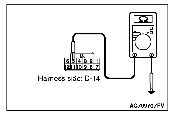 NO (receiver antenna assembly connector D-14 terminal No.5 - ground.) : Repair the wiring harness between receiver antenna assembly connector D-14(terminal No.5) and the ground.