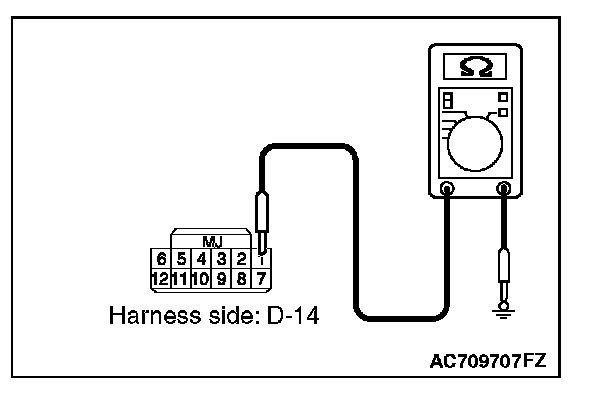 NO (receiver antenna assembly connector D-14 terminal No.1 - ground.) : Repair the wiring harness between receiver antenna assembly connector D-14(terminal No.1) and the ground.