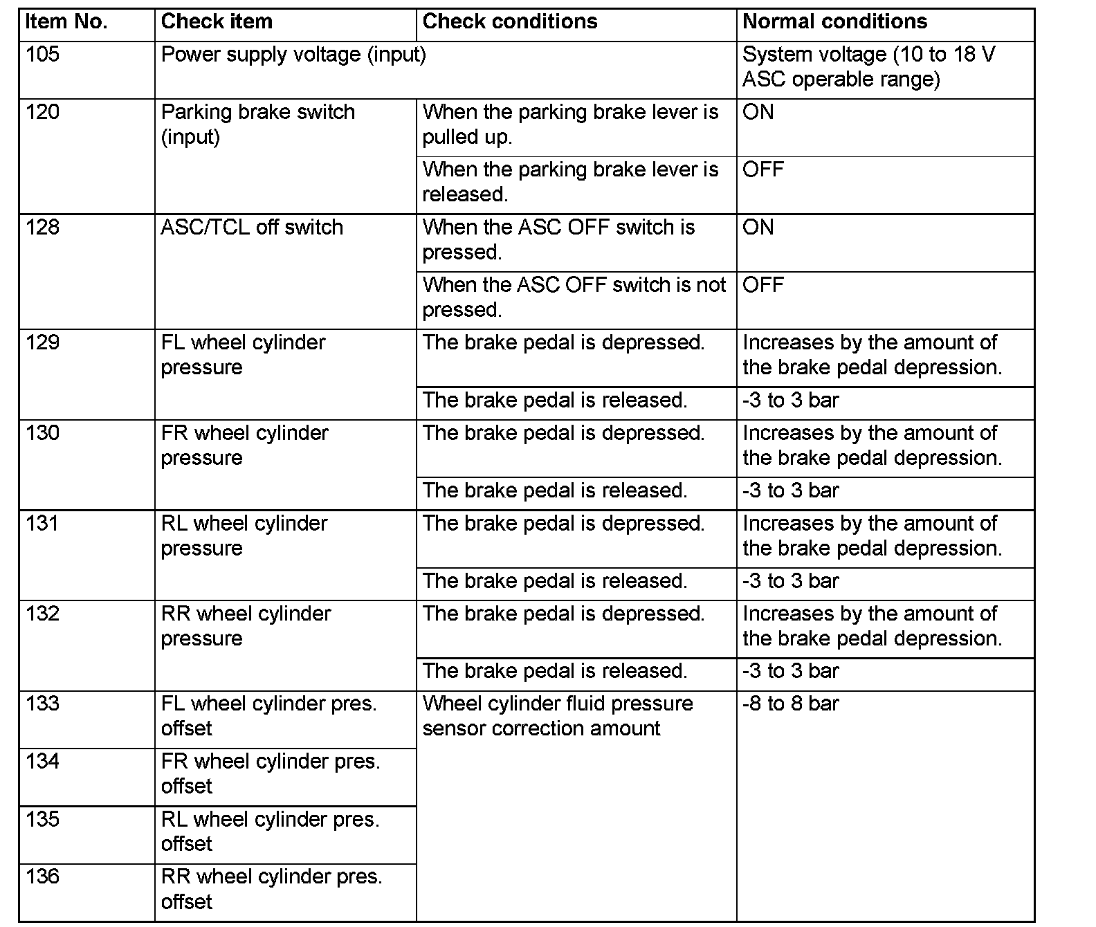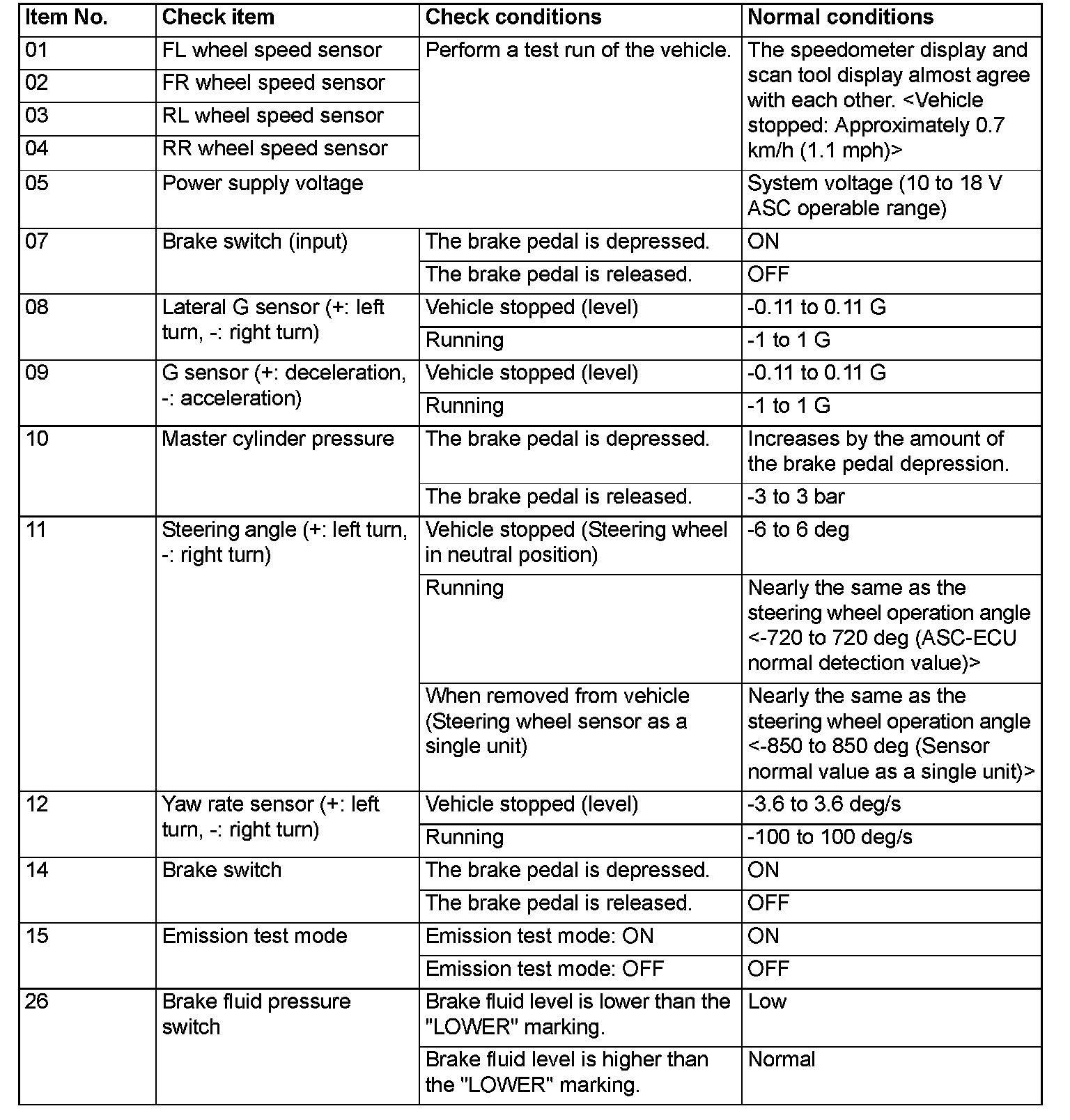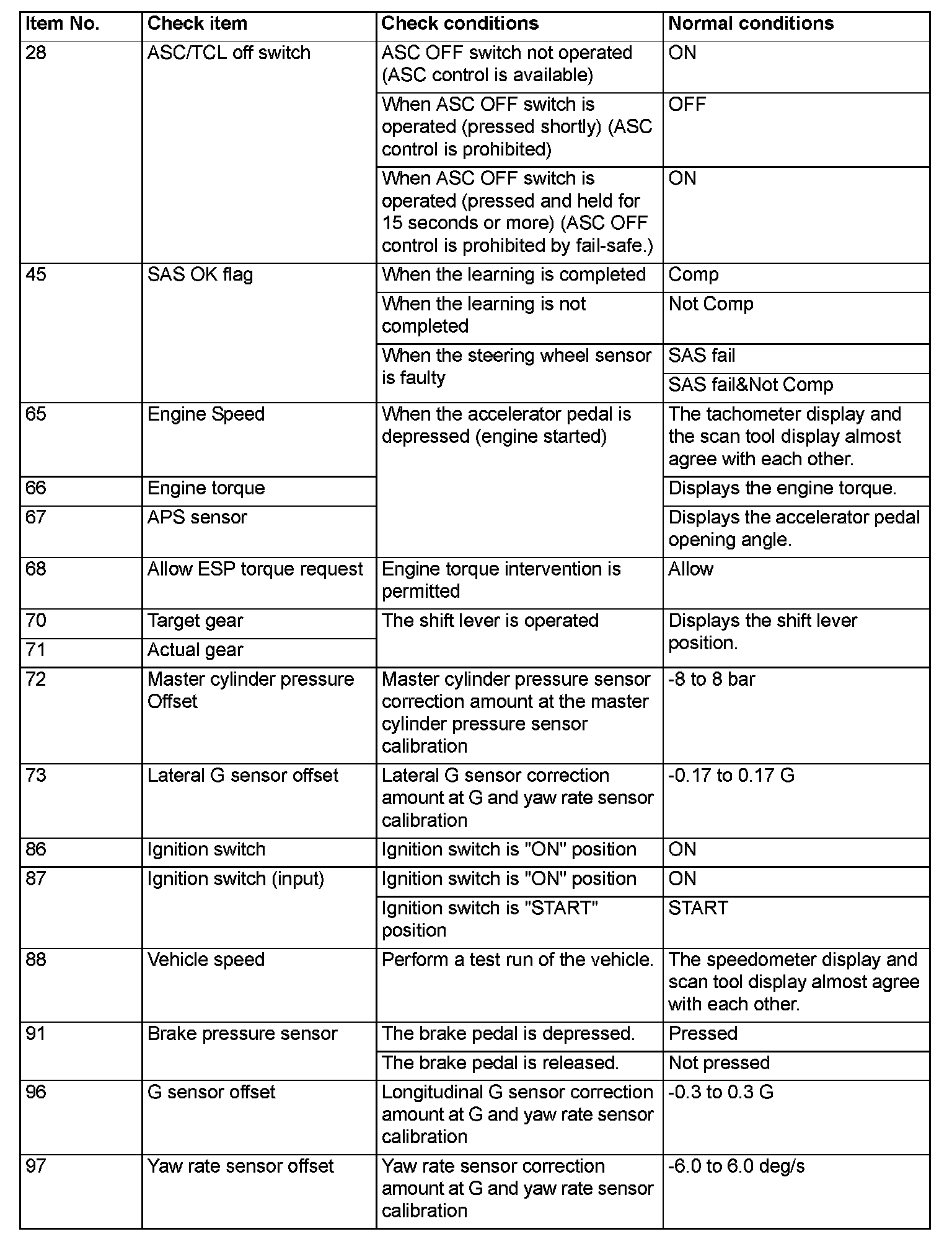 DATA LIST REFERENCE TABLEThe following items of ECU input data can be read using the scan tool.