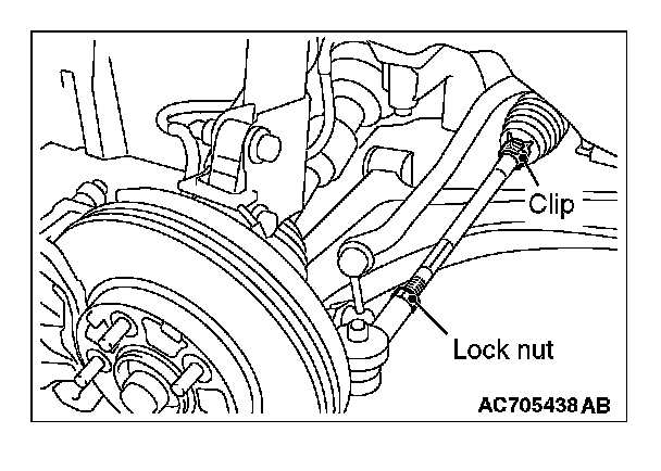 1. Loosen the lock nut with the tie-rod clip removed, and then perform the adjustment by turning the tie-rod left/right at the same degree in the opposite direction.