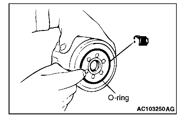 7. Apply a small amount of engine oil to the O-ring of the new oil filter.