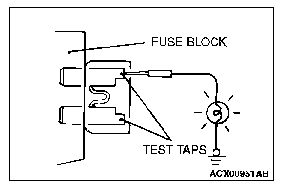 CHECKING FUSESA blade type fuse has test taps provided to allow checking of the fuse itself without removing it from the fuse block. The fusses okay if the test light comes on when its one lead is connected to the test taps (one at a time) and the other lead is grounded. Remember to turn the ignition switch to ON to ensure all circuits are live.