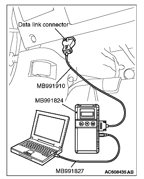 5. Connect special tool MB991910 to the data link connector.