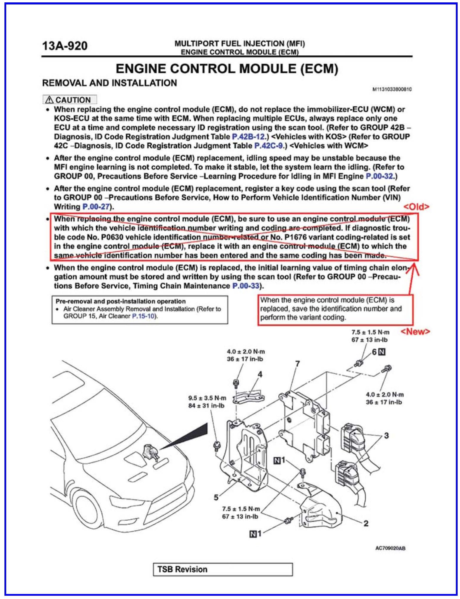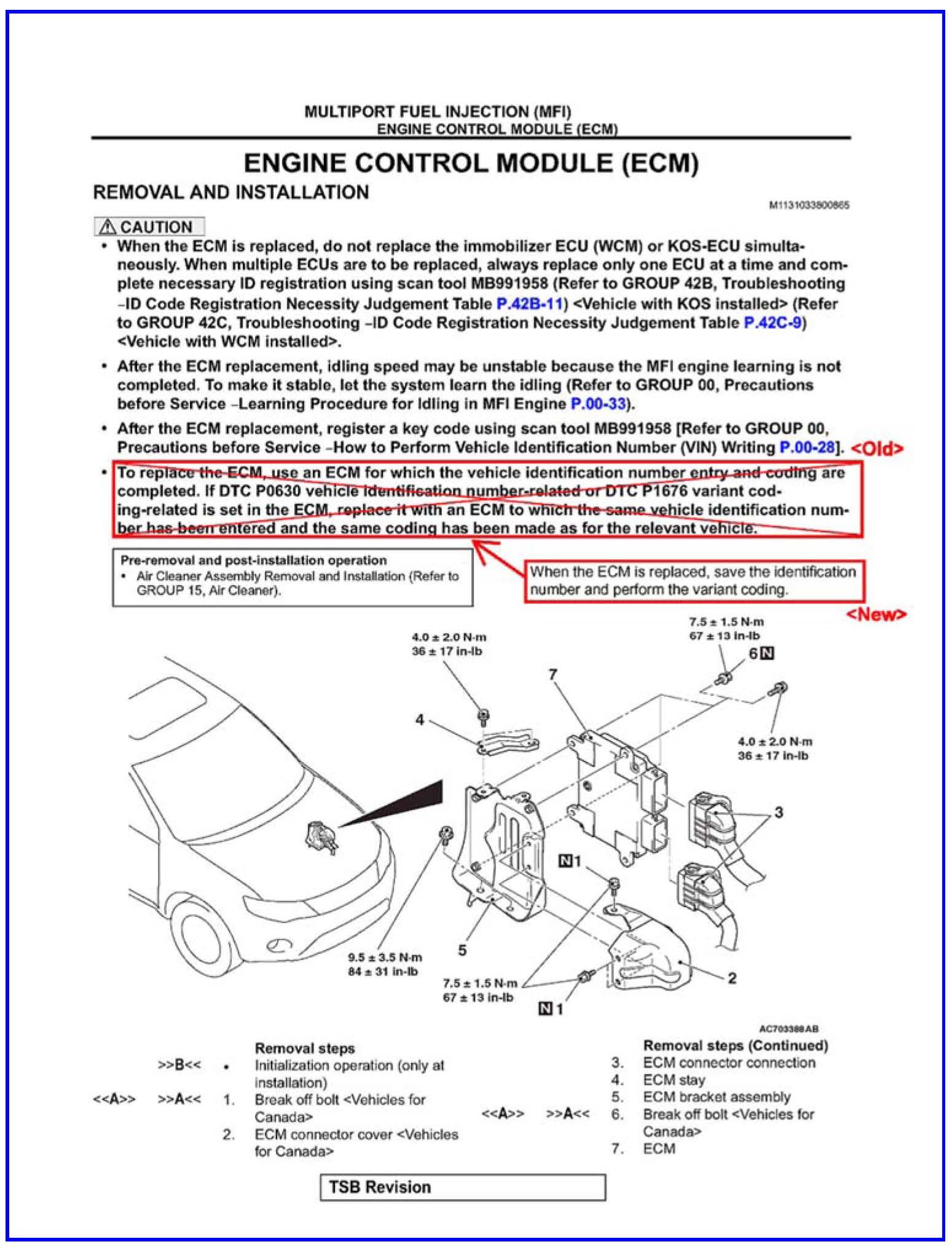 VIN WRITING & VARIANT CODING FOR ECM REPLACEMENT - SERVICE MANUAL REVISION