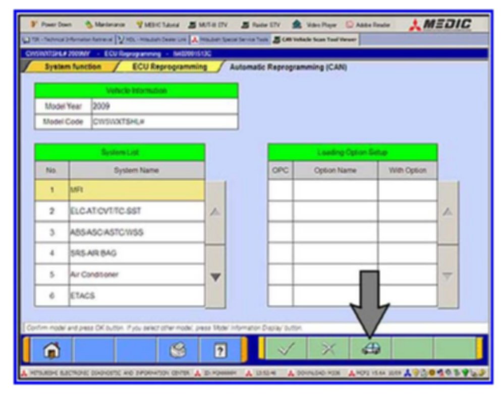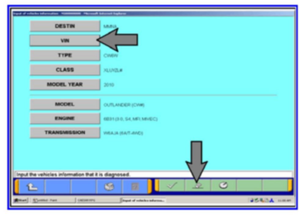 h. Click on the icon in the lower RH corner of the screen to have MUT-III automatically read the VIN. If a message appears saying that the VIN cannot be input automatically manually type the 17 digit VIN into the VIN field at the top of the page.