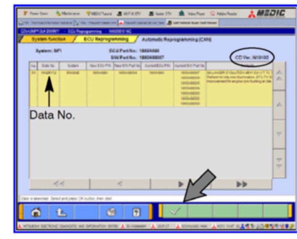If more than one row is displayed in the table, refer to he ECM Reprogramming Chart to select the proper Data No. for this procedure and select the appropriate row.