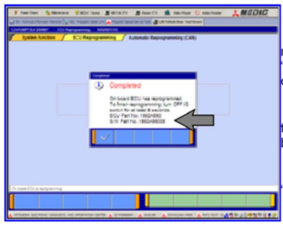 0. This message will display when ECM reprogramming is successfully completed. Confirm the "New S/W P/N" displayed matches the table shown in the first part of this TSB.