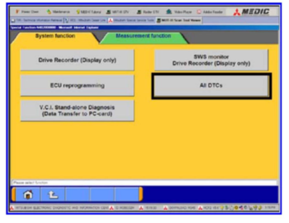 3. Using the MUT-III, check and erase ALL DTCs from all systems as follows.