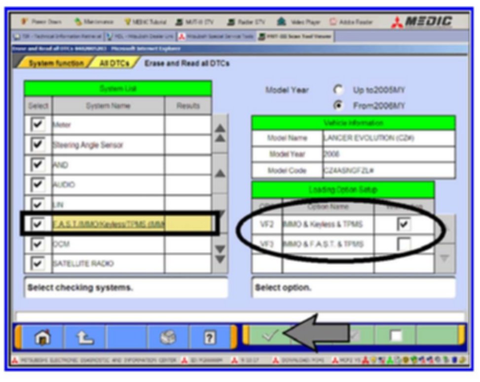 d. In the left column scroll to and click FAST/IMMOB/KEYLESS. In the right column check the correct option code (VF#) from the Loading Options Setup list. This will activate the check mark at the bottom of the page.
