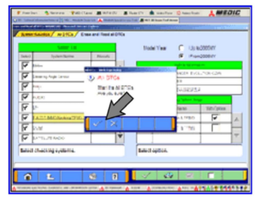 4. A window will pop up asking you to confirm DTC erasing. Click the check mark for DTC erasing and reading to begin.