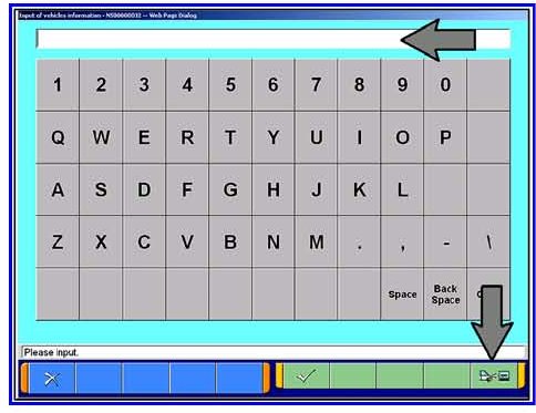 g. Click on the icon in the lower RH corner of the screen to have the MUT-III automatically read the VIN. If a message appears saying that the VIN cannot be input automatically, manually type the 17 digit VIN into the VIN field.