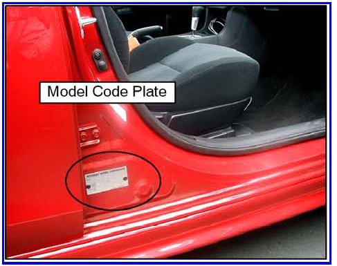 h. If it was not completed automatically, input the vehicle class. Click on the CLASS button, select the appropriate class from the menu and then click the check mark at the bottom of the page. Vehicle class can be found on the Vehicle Information Code Plate riveted to the base of the RH b-pillar (see photo above). The class is part of the model code.