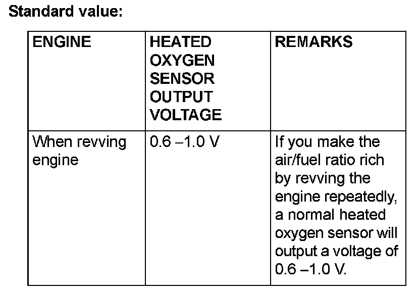 - If the temperature of sensing area does not reach the high temperature [of approximately 400 °C (752 °F) or more] even though the oxygen sensor is normal, the output voltage would be possibly low in spite of the rich air-fuel ratio.