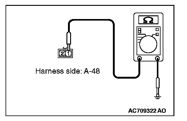 STEP 4. Check the wiring harness between hood switch connector A-48 (terminal 1) and ground.