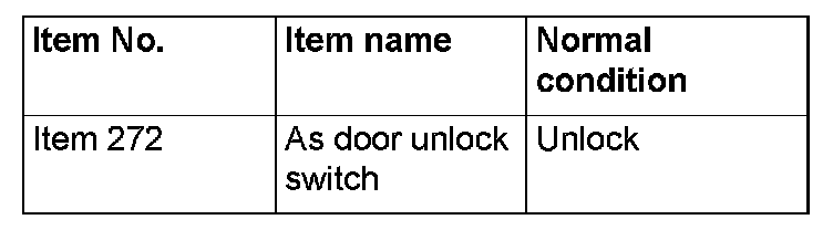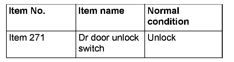 Q : Are normal conditions displayed on the "Dr door unlock switch" and "As door unlock switch"?