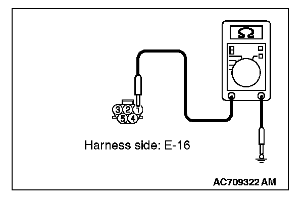 STEP 4. Check the ground circuit to the front door lock actuator (LH). Measure the resistance at front door lock actuator (LH) connector E-16.