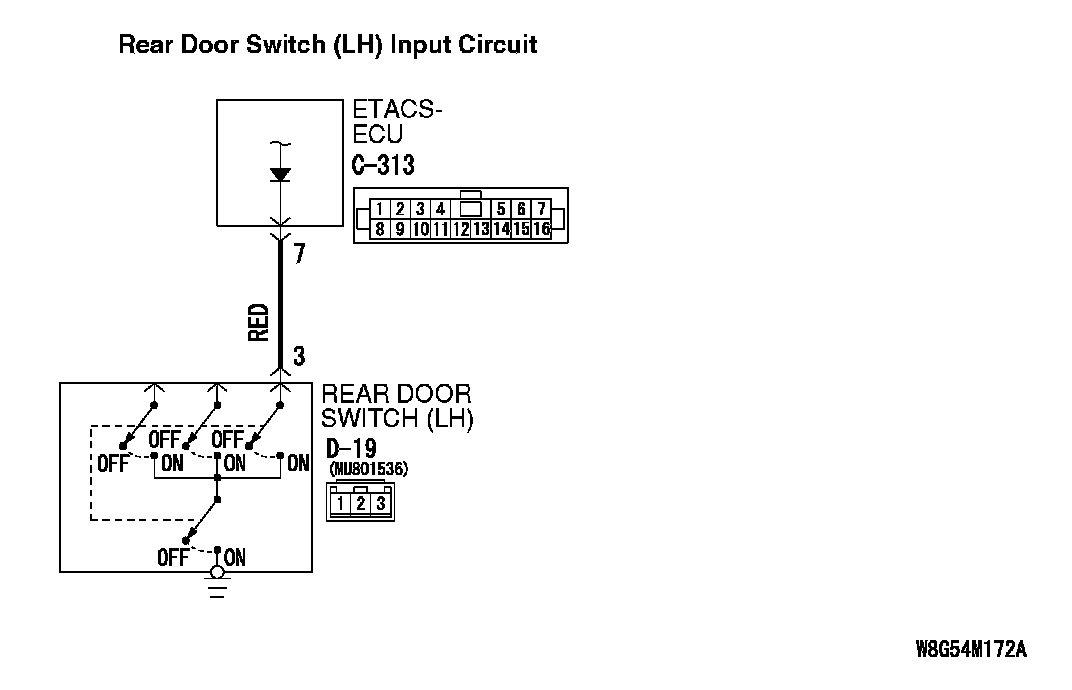 Inspection Procedure 7: ETACS-ECU Does Not Receive Any Signal From The Rear Door Switch (LH).Rear Door Switch (LH) Input Circuit (Part 1):