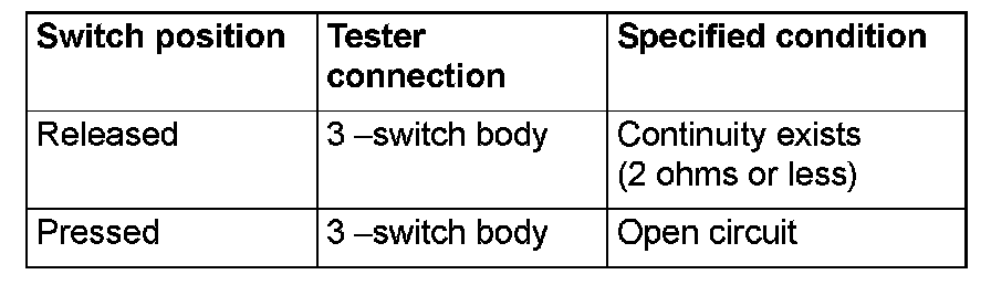 Remove the rear door switch (LH). Then check the continuity between the switch terminals and the switch body.