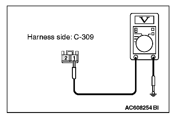 3. Measure the voltage between ETACS-ECU connector C-309 terminal 1 and ground.