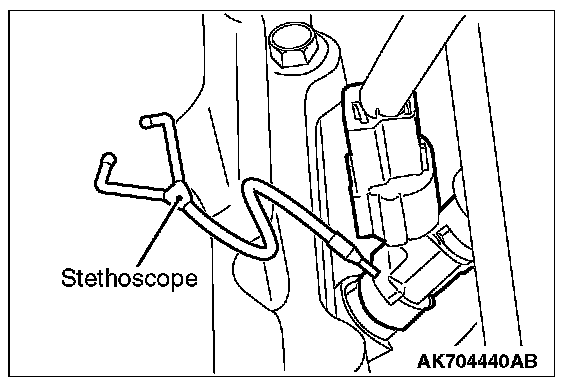 INJECTOR CHECKUsing a stethoscope or long blade screwdriver, check the operation sound ("tick-tick-tick") of injectors during idling or during cranking. Check that as the engine speed increases, the frequency of the operating sound also increases.