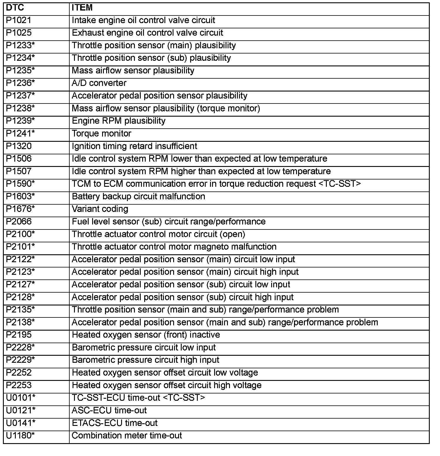 NOTE: When the Transmission Control Module (TCM) detects malfunctions related to the TC-SST, the Malfunction indicator Lamp (SERVICE ENGINE SOON or Check Engine Lamp) is also illuminated.