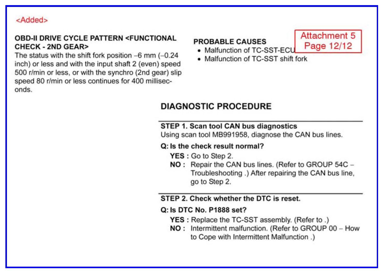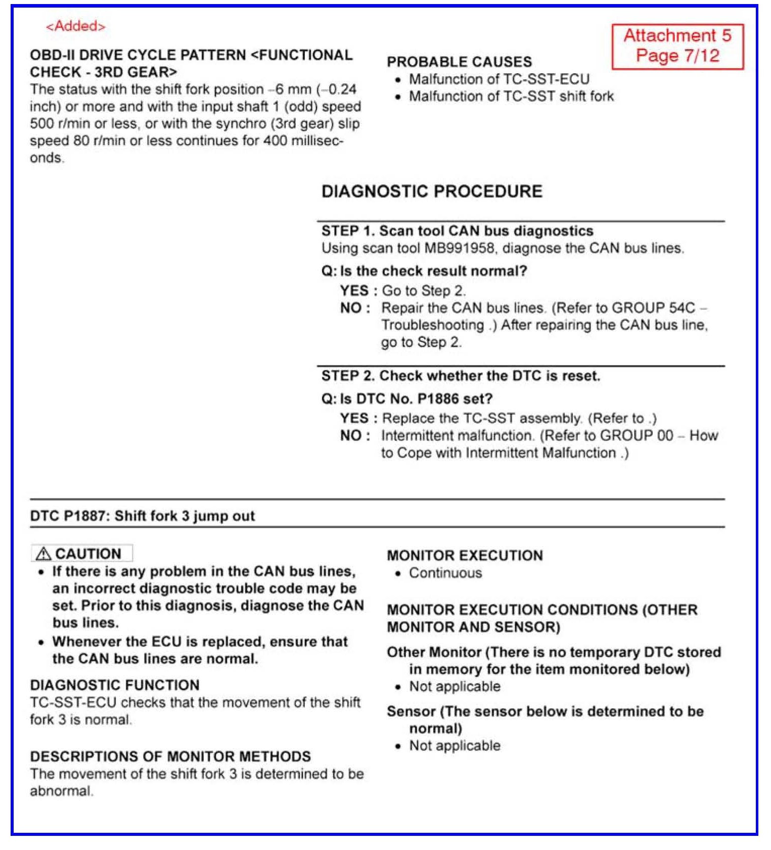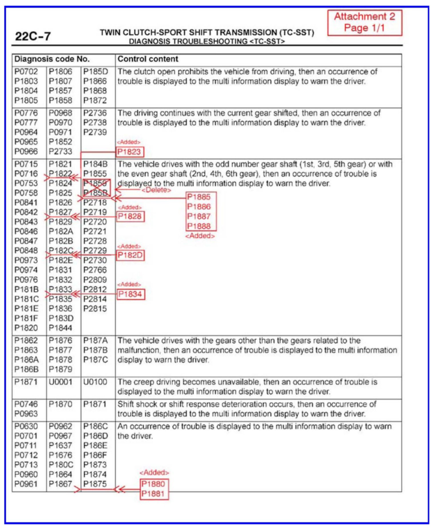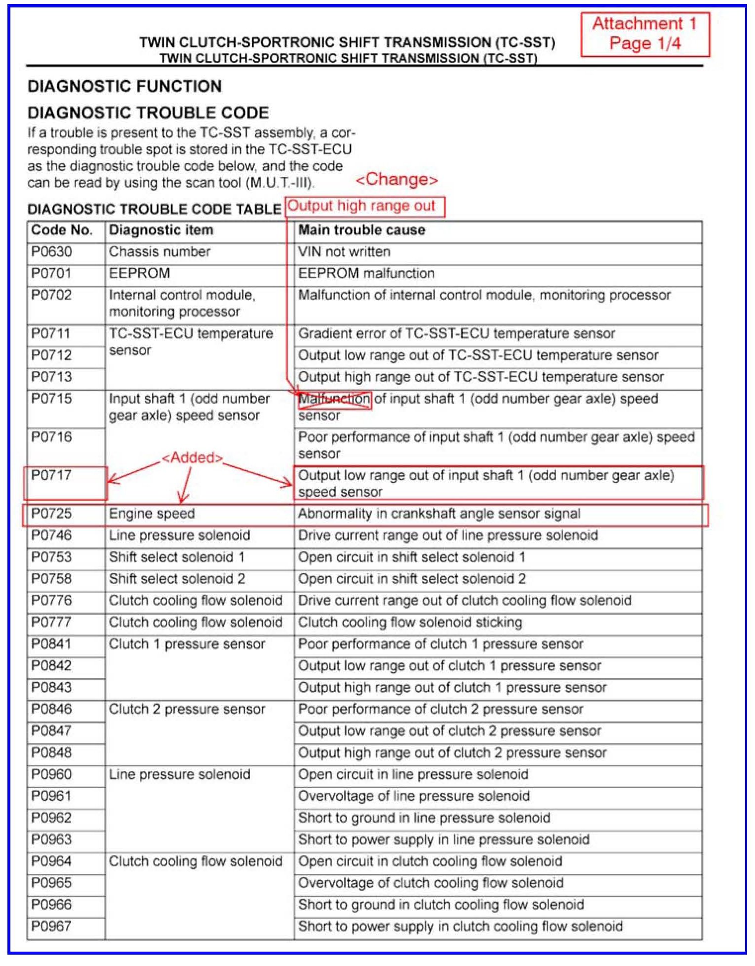 CHANGES TO DIAGNOSTIC TROUBLE CODE CHARTS AND PROCEDURES FOR TC-SST - SMR