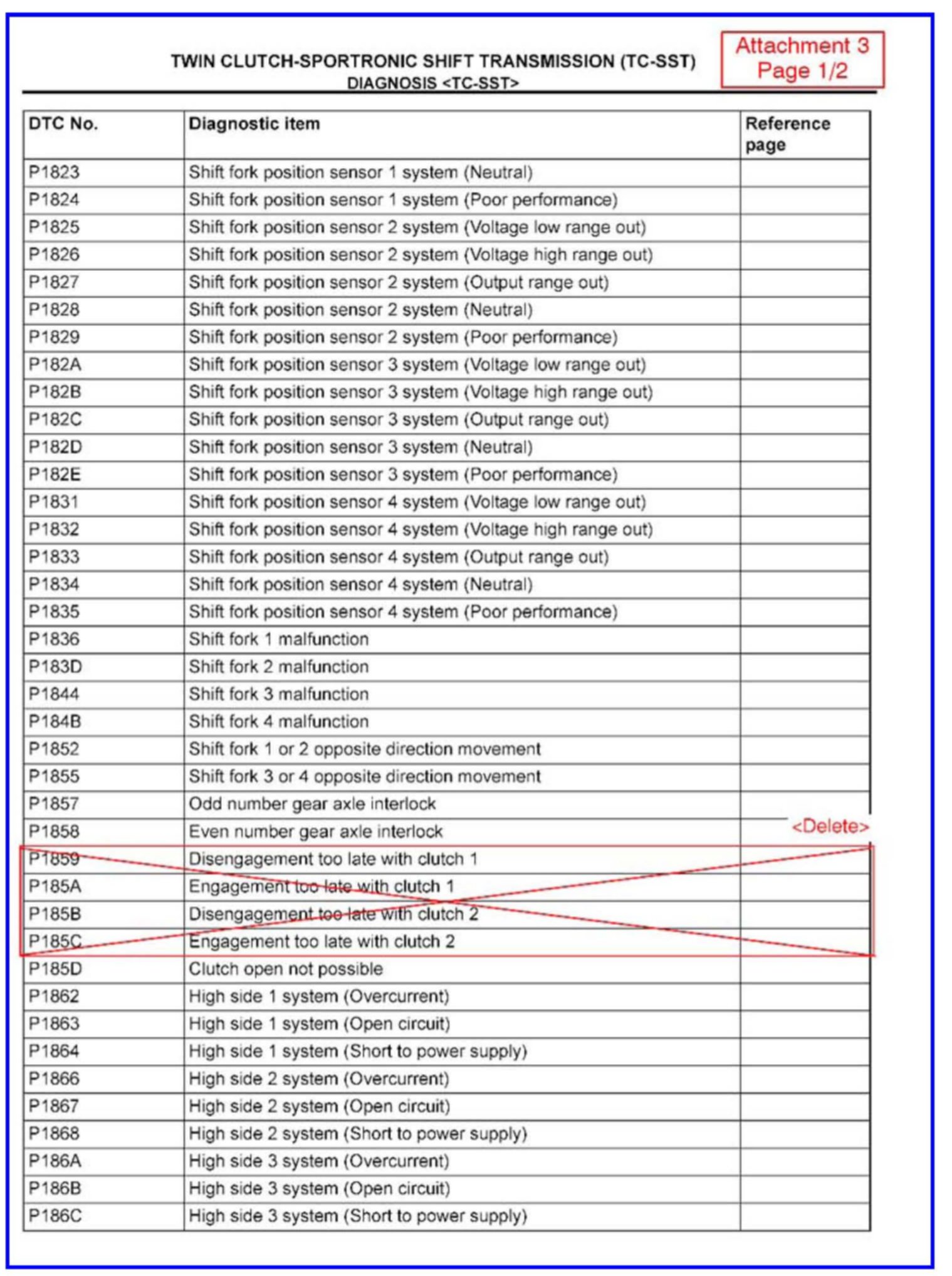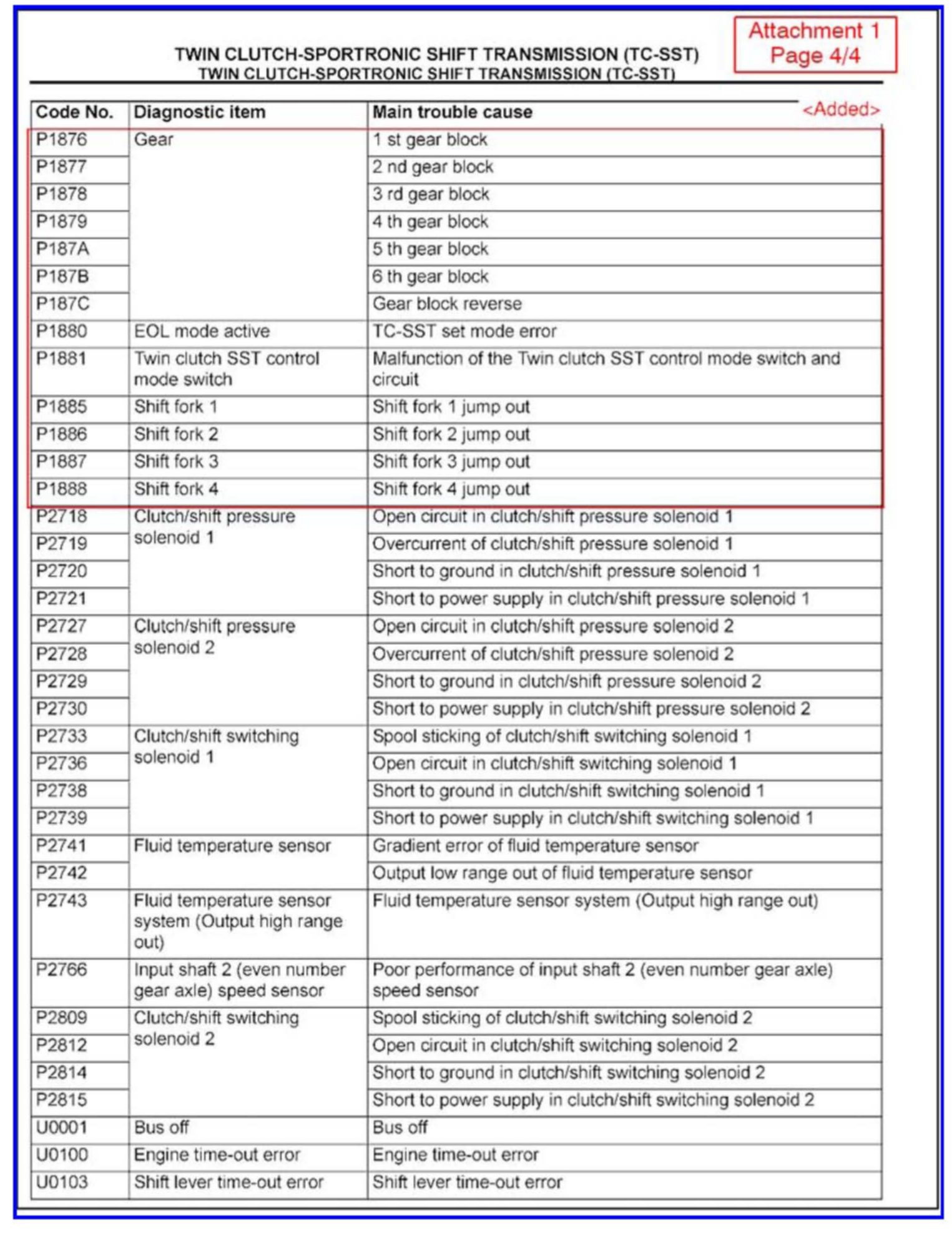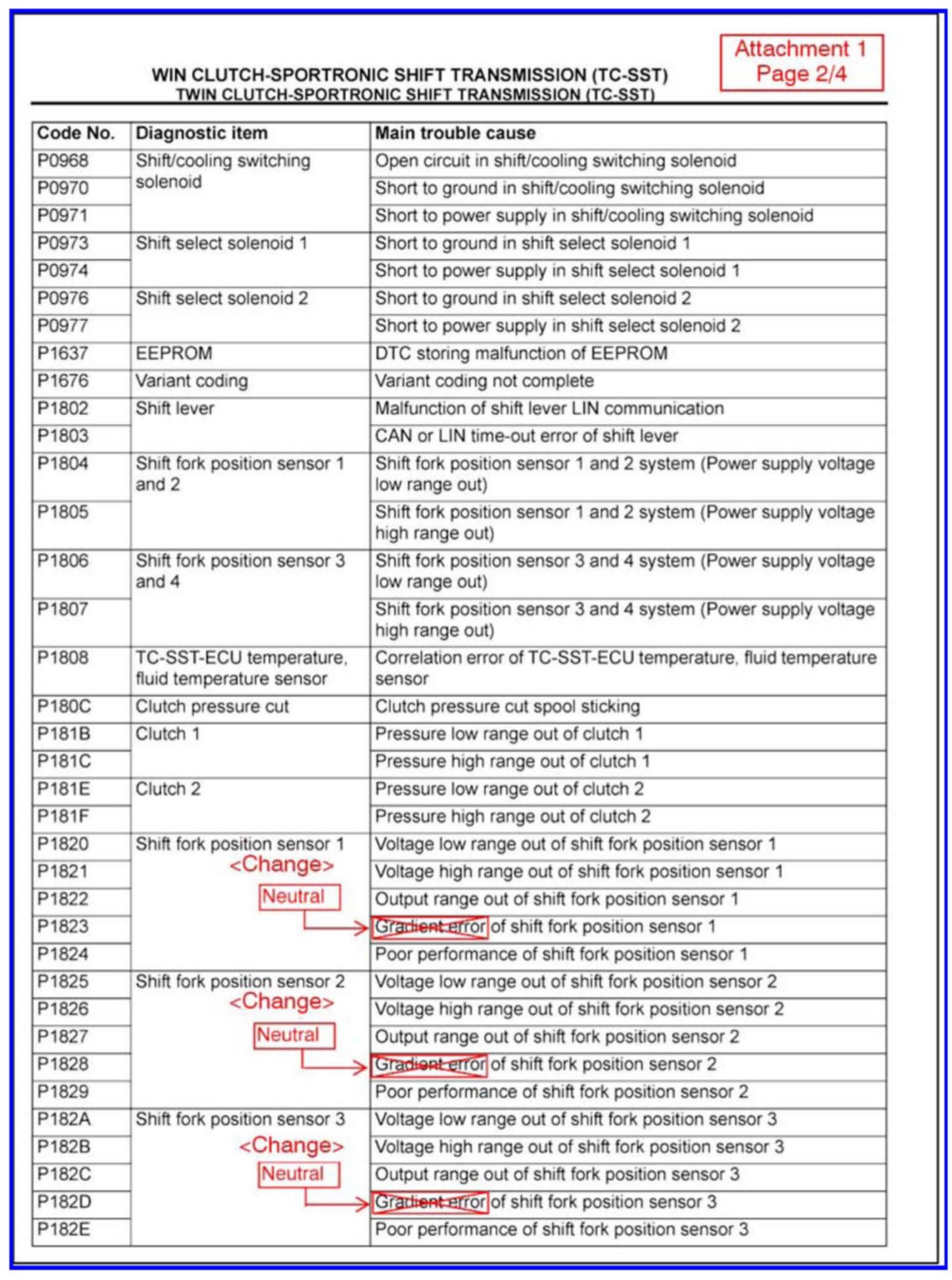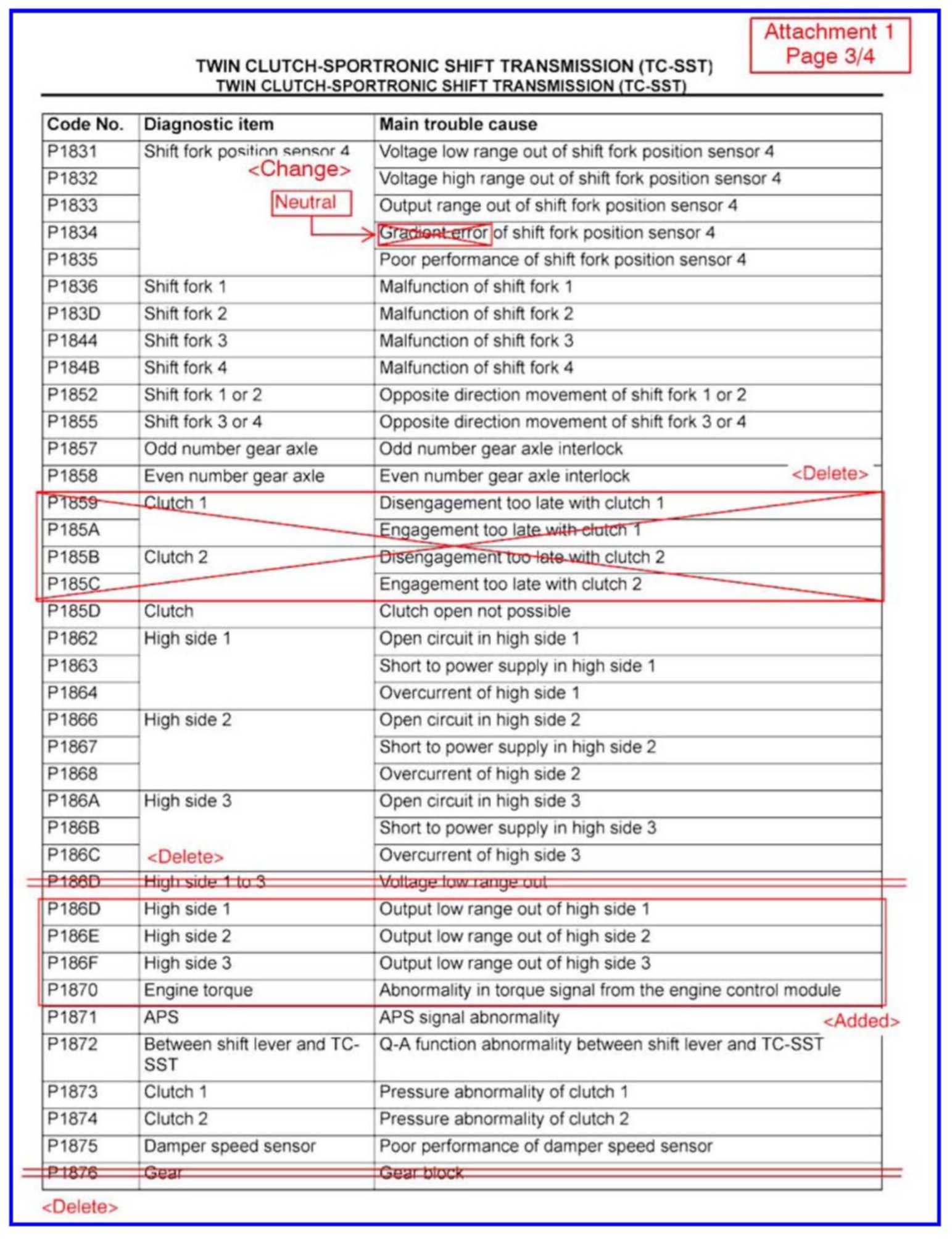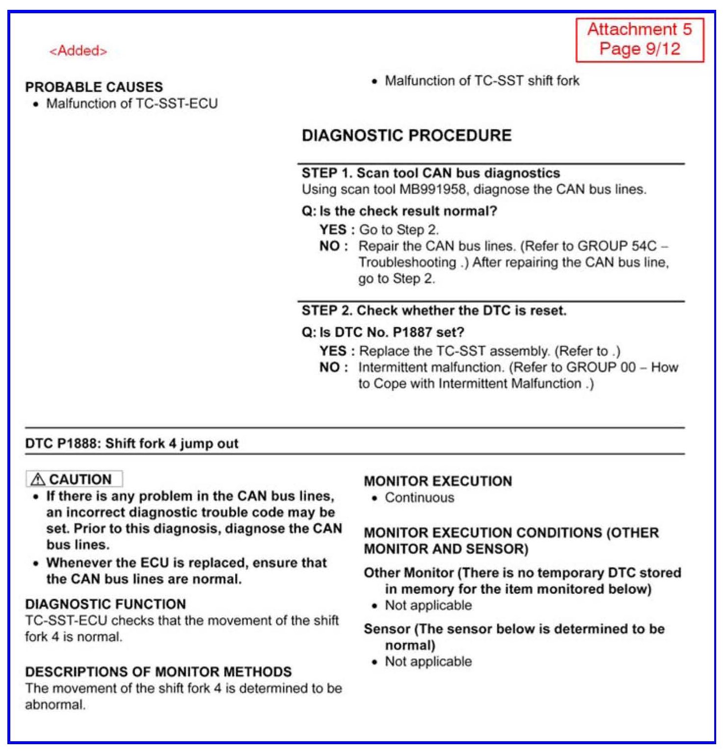 CHANGES TO DIAGNOSTIC TROUBLE CODE CHARTS AND PROCEDURES FOR TC-SST - SMR