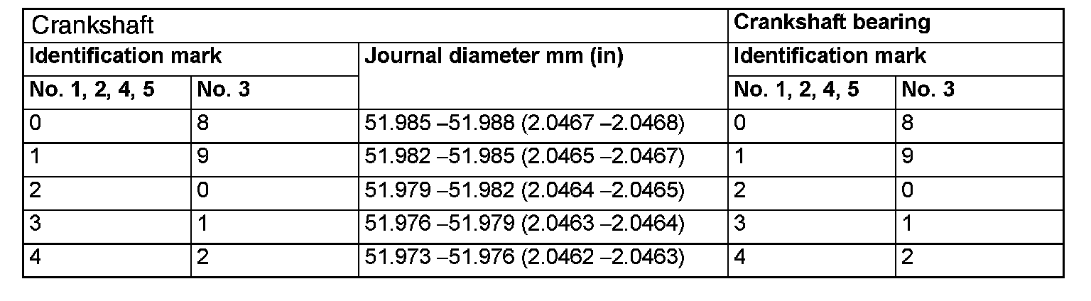Standard Value 0.038 mm - 0.069 (0.0015 - 0.0027 in)