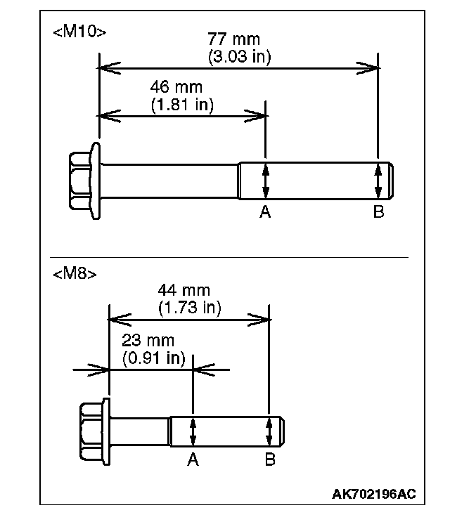 Before using the crankshaft bearing cap bolt again, carry out the check according to the following procedure: