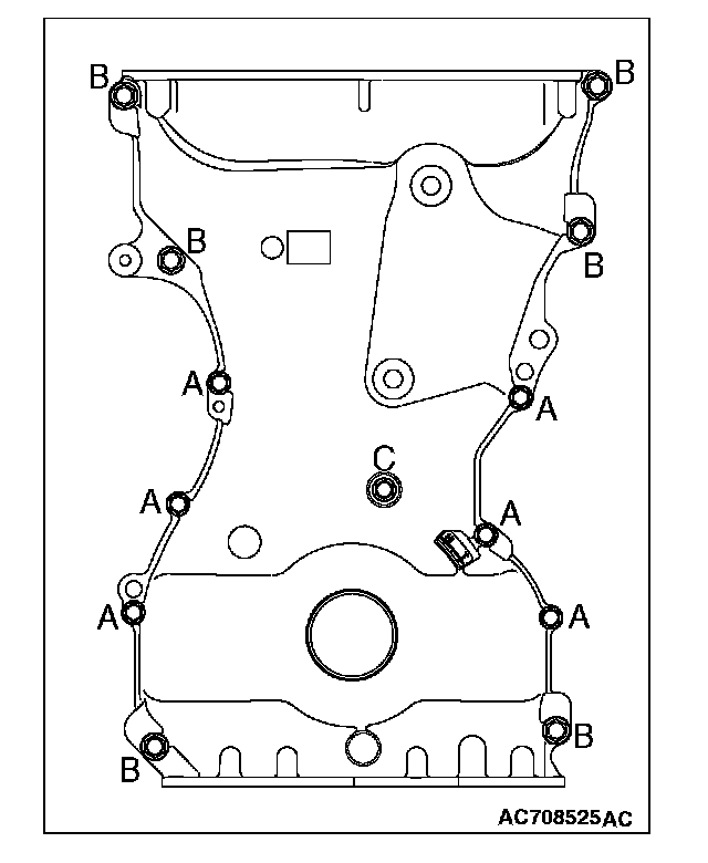 Timing Chain CoverTo the installation positions shown in the figure, tighten the timing chain case assembly mounting bolts to the specified torque shown below.