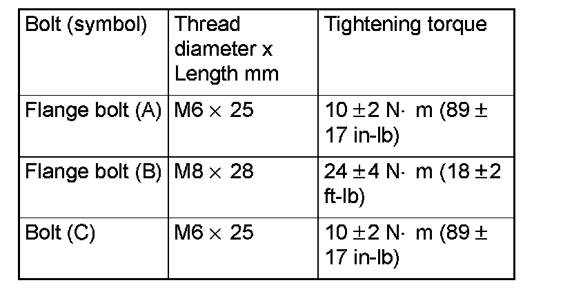 Idler pulley bolt 48 ± 7 Nm (36 ± 4 ft-lb)