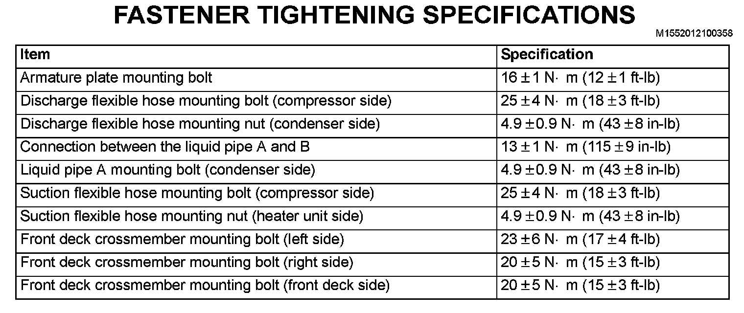 Fastener Tightening Specifications: