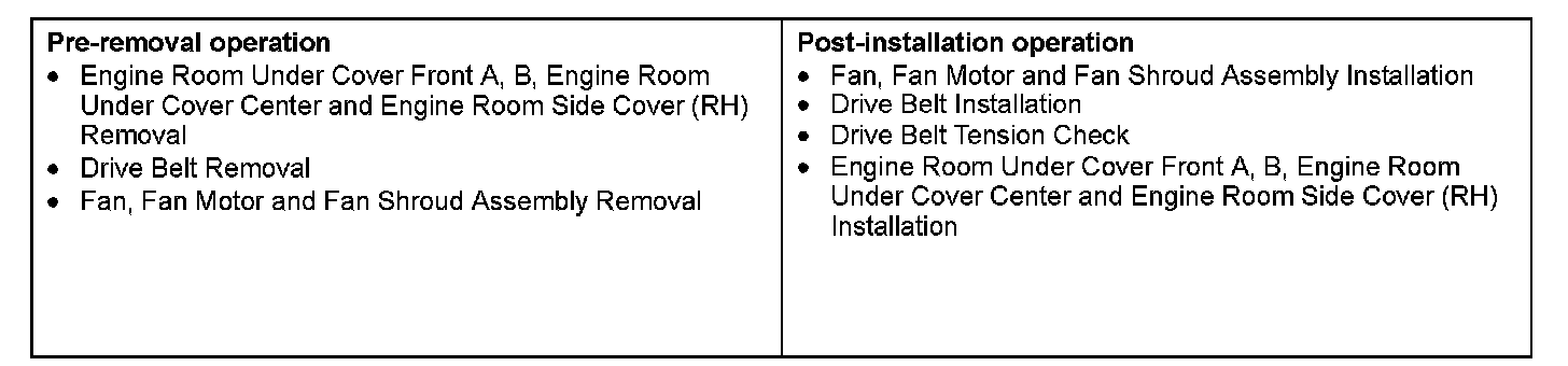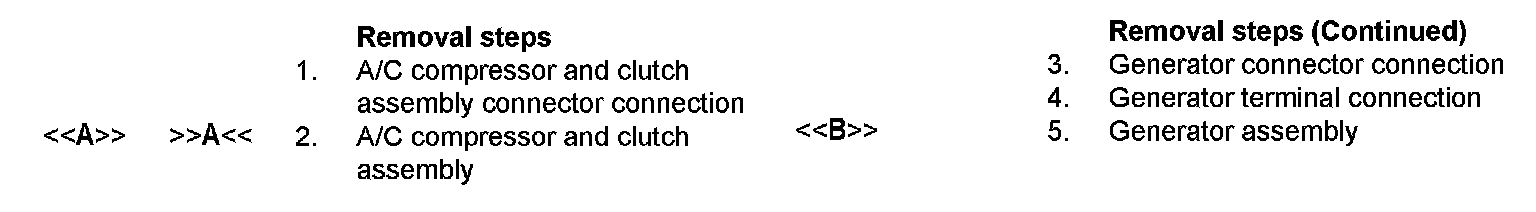 2. Tie the removed A/C compressor and clutch assembly with a string at a position where it will not interfere with the removal and installation of the generator assembly.